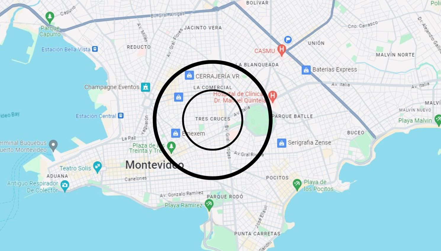 En la zona de tres cruces, estando asi cercano a todos los centros mas densamente poblados de montevideo.